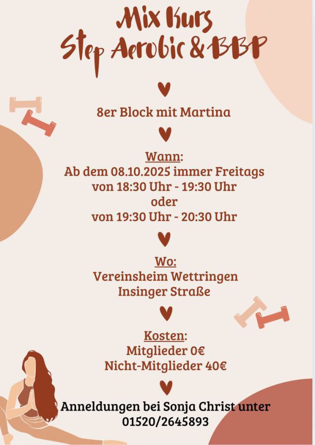 - Unser beliebter Mix-Kurs Step Aerobic & BBP startet in eine neue Runde